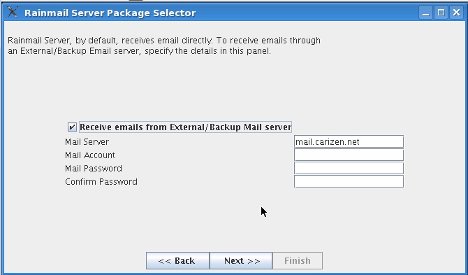 This section gives further installation steps when Email Server is selected as a module with the Catchall option.