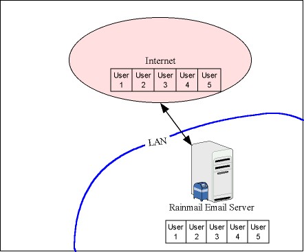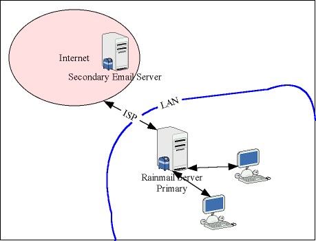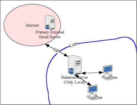 - Rainmail Email server is going to be deployed only locally with External Primary Server on Internet.